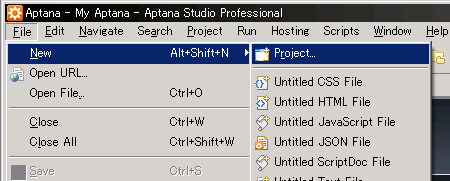 Aptanaのウェブサイトから、Aptana Studio 1.2.6(スタンドアローン版) をダウンロードした(ダウンロードページ)。