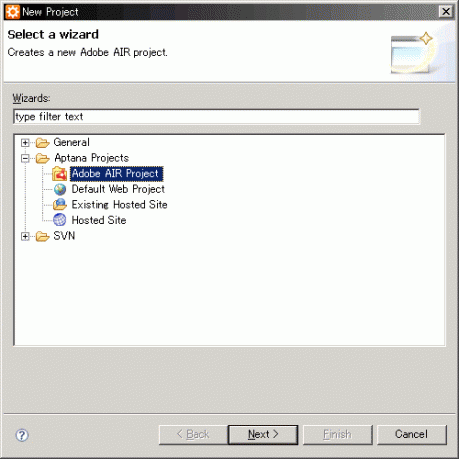 続いて開くダイアログウィンドウで、「Adobe AIR Project」 を選ぶ。