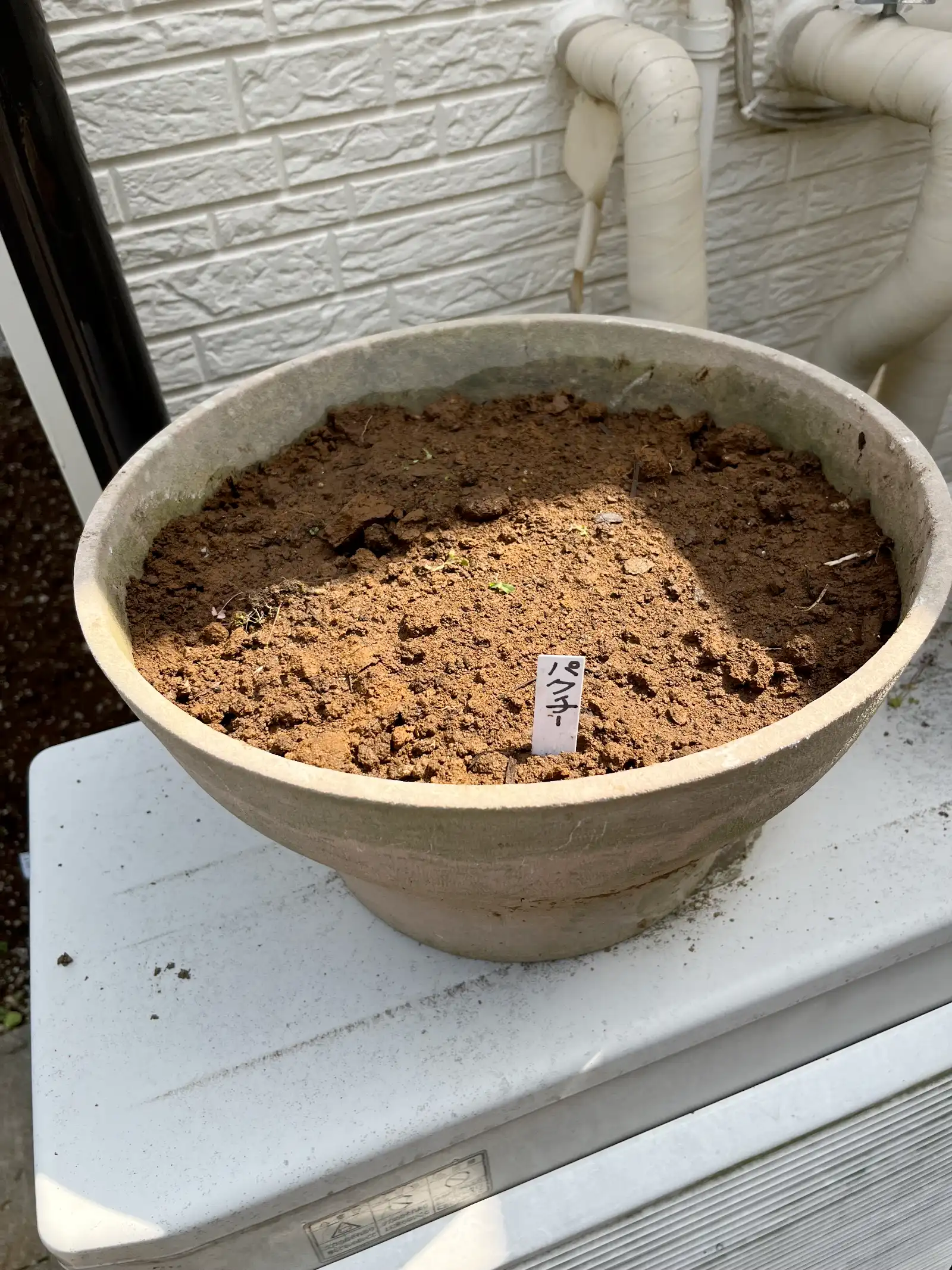 プランターのパクチー。蒔いたばっかりなので土しか写っていません。