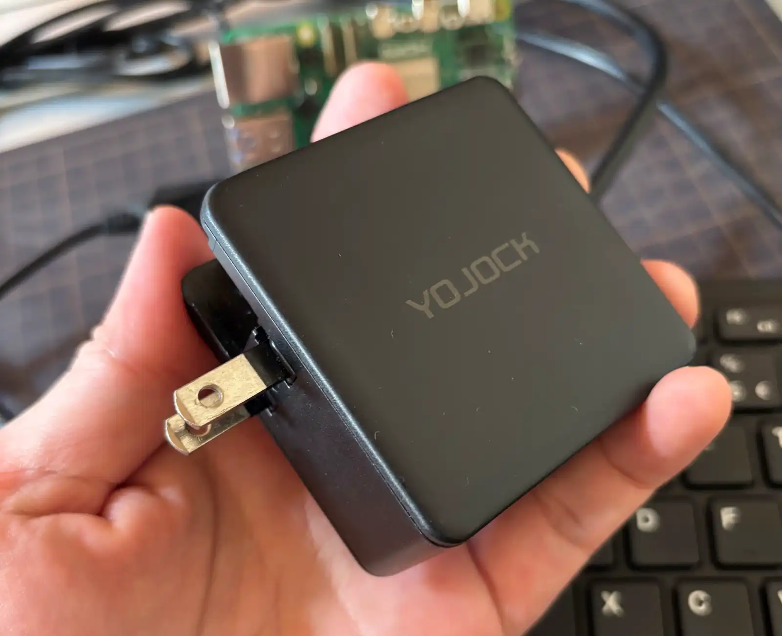 Raspberry Pi 5 は 5V/5A = 25W の電力を必要としますが、このアダプタは 5V/3A なので、少し足りません。足りないけど使えました。