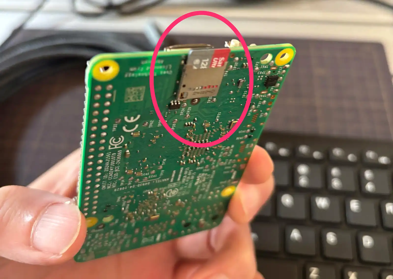 まず、ストレージ。さっきOSをインストールした micro SD カードを挿入します。