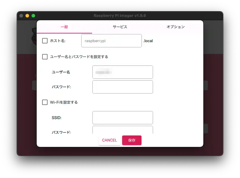 OS は Raspberry Pi OS の 64bit を選択した。他にも、Ubuntu などいくつかのOSが選択できる。