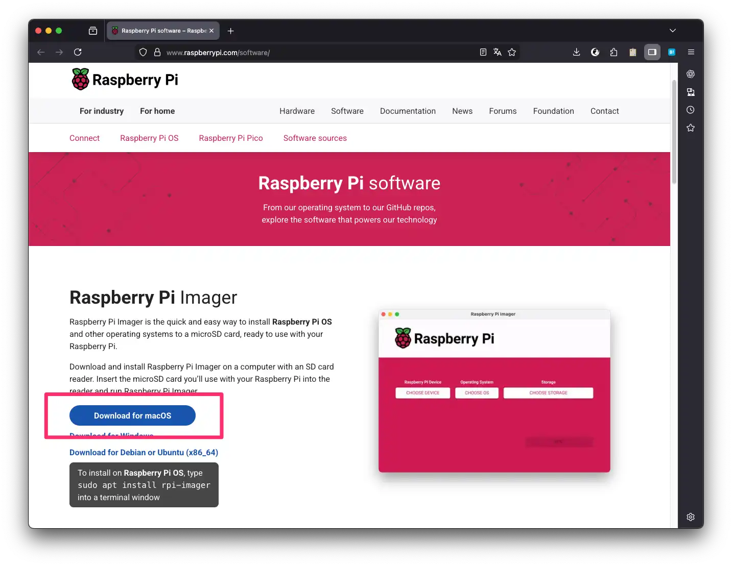 ↓ここから、 Raspberry Pi Imager をダウンロードして、インストールする。