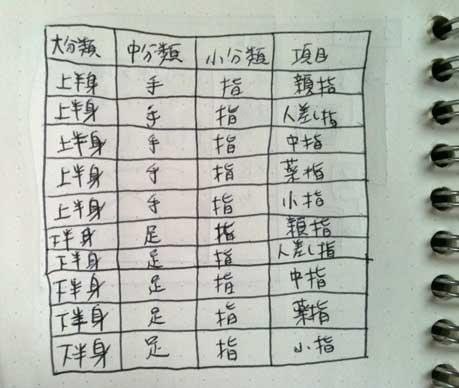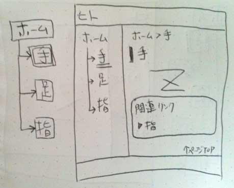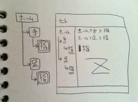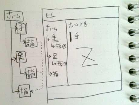 例えば、『/手/指』 と 『/足/指』 は、どっちも指なのに隣に並ばない。指は指なので、語られる内容には重複する部分が多くなるはずなので、それが分散して置かれていると不便だ。でも、手の指は確かに手に属するし、足の指は足に属する。