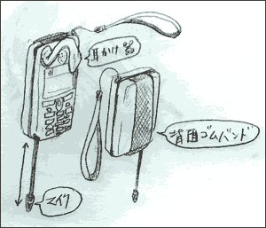 何が言いたいかというと、メガネみたいに耳に掛けて使うヘッドホン(イヤホン?)と同じ仕組みを、携帯電話につけようというもの。